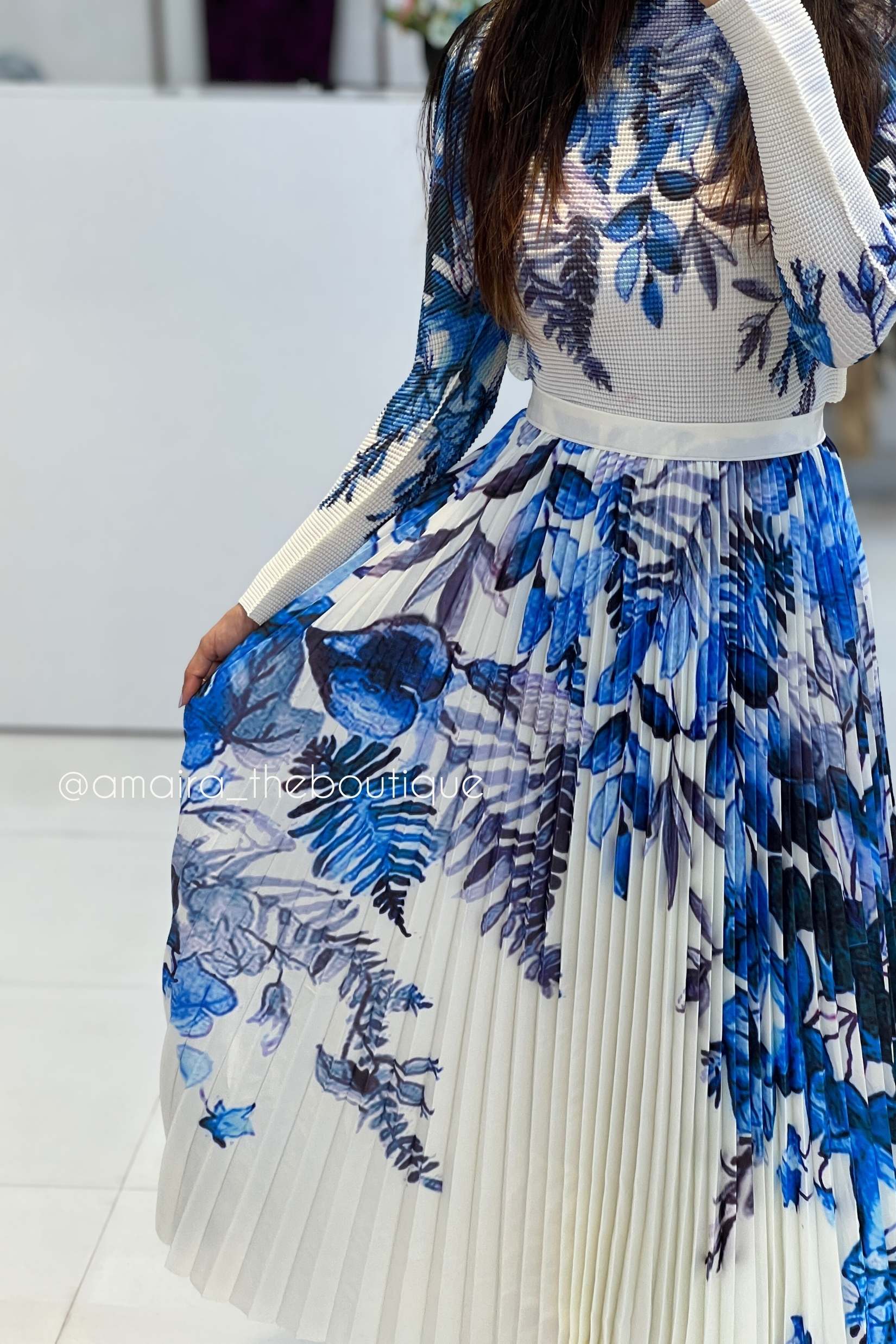 ord set featuring a pleated skirt and matching top.