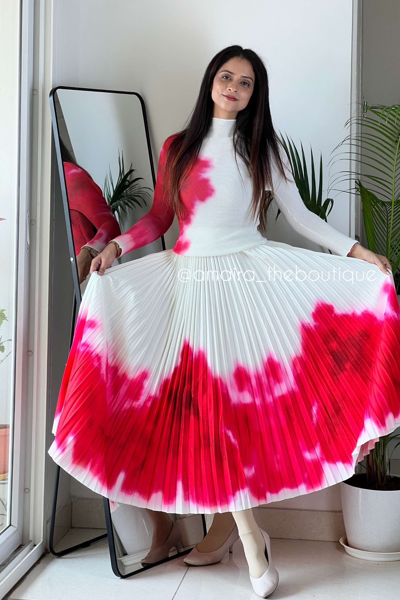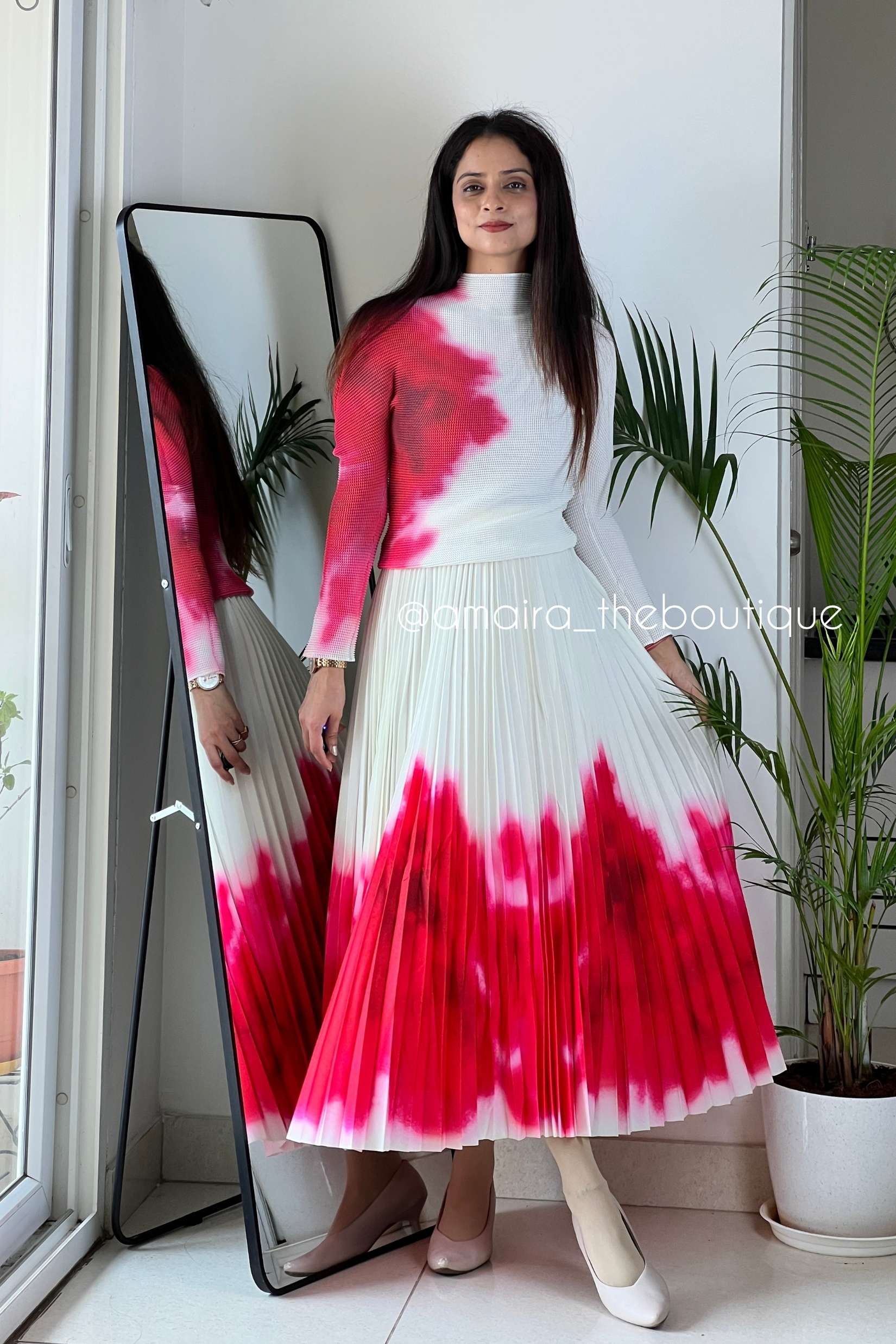 Imported co-ord set featuring a pleated skirt and matching top.